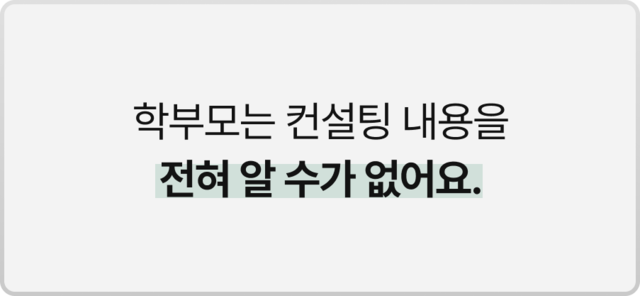 학생은 전담 컨설턴트와의 일대일 온라인 교실에서 컨설팅을 받습니다. 주로 개인 교실에서 모든 컨설팅과 소통이 이루어지며, 학생은 선생님과 앱을 통한 일대일 채팅을 할 수 있습니다. 또한 선생님과 학부모님의 직접 상담도 주기적으로 이뤄집니다.